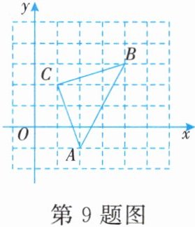 9. 如图,在平面直角坐标系中,△ABC 的顶点都在网格的格点上,其中点 C 的坐标为(1,2)。