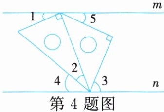 4. 将一副三角尺按如图所示的方式摆放在直线m,n之间,∠1=25°,∠2=30°。若想证明m//n,则还需要的条件可以是 (