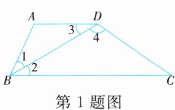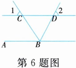 6. 如图,∠ABD=100°,且BC平分∠ABD,∠1=50°。
