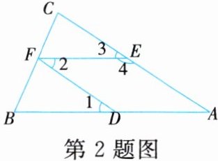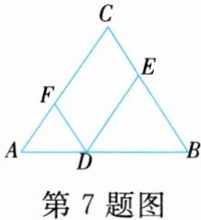 7. 如图,在△ABC中,点D在边AB上,DE//AC,交BC于点E,点F在边AC上,∠AFD=∠BED。