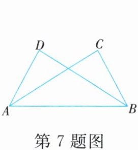 7. 如图,已知$\triangle ABC\cong \triangle BAD$,若$\angle DAC=20^{\circ }$,$\angle C=88^{\circ }$,则$\angle DBA=$
