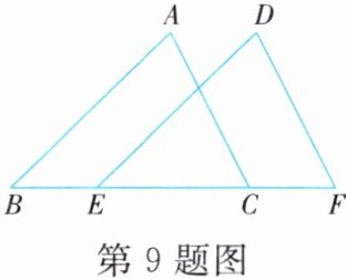 9. 如图,已知$\triangle ABC\cong \triangle DEF$,点 B,E,C,F 在同一条直线上。