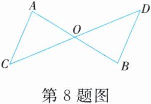 8. 如图,已知 AB 与 CD 相交于点 O,$\triangle AOC\cong \triangle BOD$。求证:$AC// BD$。