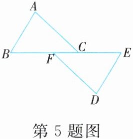5. 如图,点 C,F 在 BE 上,且$\triangle ABC\cong \triangle DEF$。若$BE=8$,$CF=2$,则 BC 的长为(