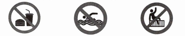 Ⅰ.1.No running. 2.No smoking. 3.No parking. 4.No food or drink. 5.No swimming. 6.No crossing.