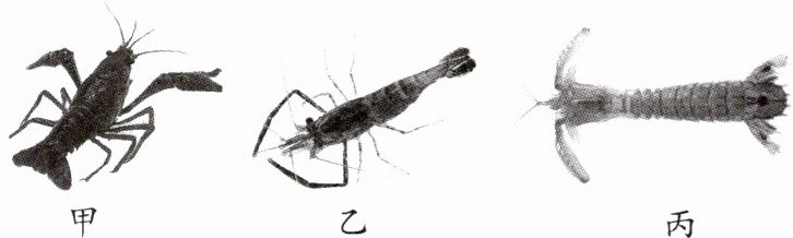 12.如图甲为小龙虾,乙为河虾,丙为皮皮虾,请仔细观察,判断它们都属于无脊椎动物中的哪一类动物? 。三种虾中,哪两种亲缘关系更近,请做出判断,并说出理由。 。