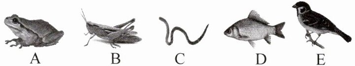 14.图中A、B、C、D、E是常见的五种动物,据图回答下列问题。