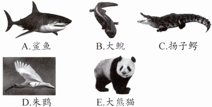 D.朱鹮 E.大熊猫