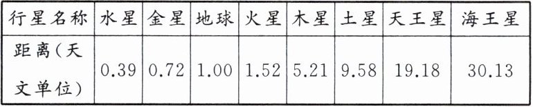 4.太阳系中的八大行星到太阳的距离如下表所示: