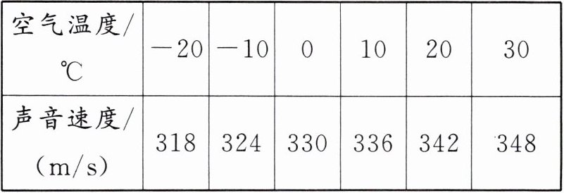 |声音速度/(m/s)|318|324|330|336|342|348|