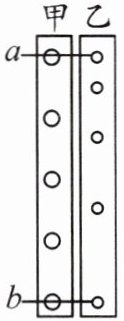 8.“频闪”照相机每隔相等的时间曝光一次,能在一张照片上记录下运动物体在不同时刻所处的位置。右图所示是质量相同、体积不同的甲、乙小球,下落一段时间后,分别从a运动到b位置时拍摄到的频闪照片,请回答:
