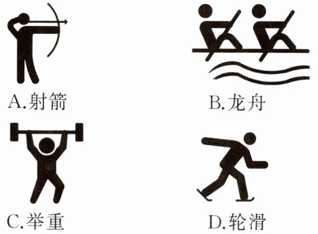 1. 杭州亚运会共设 40 个竞赛大项,61 个分项。下图是 4 个比赛项目的图标,其中主要利用“力能改变物体的形状”的比赛项目是( )