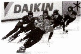 3. 在首尔进行的短道速滑世锦赛男子 5000 m 接力决赛中,中国队勇夺冠军。右图是比赛时的场景,下列说法正确的是( )