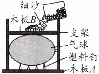 ②将气球置于装置内,将烧杯中的细沙缓缓倒在木板 B 上,直至气球刚好破裂,称量烧杯中剩余细沙的质量,重复实验 3 次,并记录平均值。