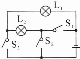 9. 如图所示,若闭合开关$S_{1}和S_{3}$,断开$S_{2}$,则灯泡$L_{1}和L_{2}$组成______(填“串联”或“并联”)电路;若仅闭合开关$S_{3}$,则灯泡______发光;若只闭合开关$S_{2}$,则通过灯泡$L_{1}和L_{2}$的电流______(填“相等”或“不相等”)。