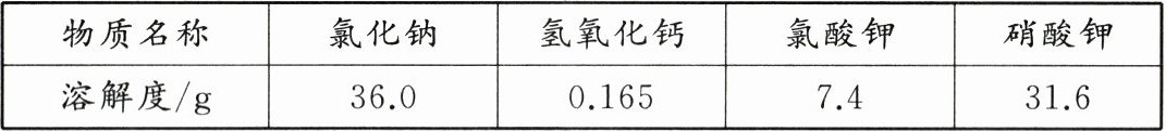 物质名称 氯化钠 氢氧化钙 氯酸钾 硝酸钾