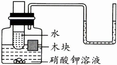 硝酸钾固体,木块漂浮在硝酸钾溶液中。当向试管中加入一定量的硝酸