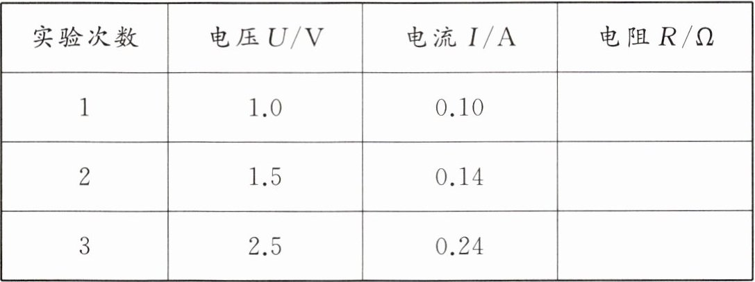 | 实验次数 | 电压U/V | 电流I/A | 电阻R/Ω |