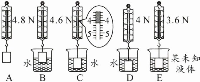 (3)由图中数据分析计算可知E中的未知液体的密度为______kg/m3。