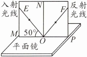 5. 小王同学在家里将一个平面镜放在水平桌面上,再把一张可沿 ON 折叠的硬白纸板 ENF 竖直的立在平面镜上,以此来探究光的反射规律。通过测量他发现此时入射光线与平面镜成 50°夹角,如图所示,则( )