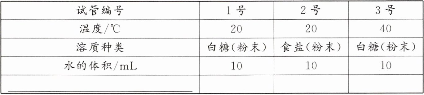 |溶质种类|白糖(粉末)|食盐(粉末)|白糖(粉末)|