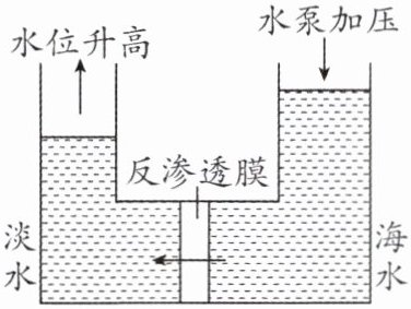 5.海洋作为人类重要的资源宝库,不仅可以提供丰富的自然资源,还可以通过科技手段推动再生资源的开发和利用。海水淡化是综合利用海洋资源的重要产业。专家介绍,海水淡化使用了反渗透膜淡化技术,其工作原理装置如图所示。反渗透膜的作用是允许水分子透过,阻止盐类透过。采用该装置淡化海水,可分别获得浓盐水和淡水。