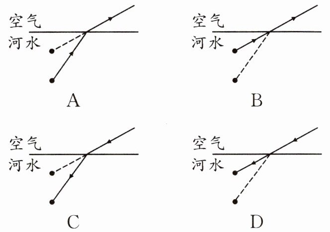 3. “潭清疑水浅”,潭水看起来很浅,实际上却很深。下列光路图能解释这一现象的是( )