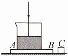 2. 如图所示,一只烧杯中装有半杯水,放在水平木板 AB 上,一束光线竖直向下照在水面上。现在 B 端下方垫一个小木块 C,使木板倾斜一个小的角度,则此时( )