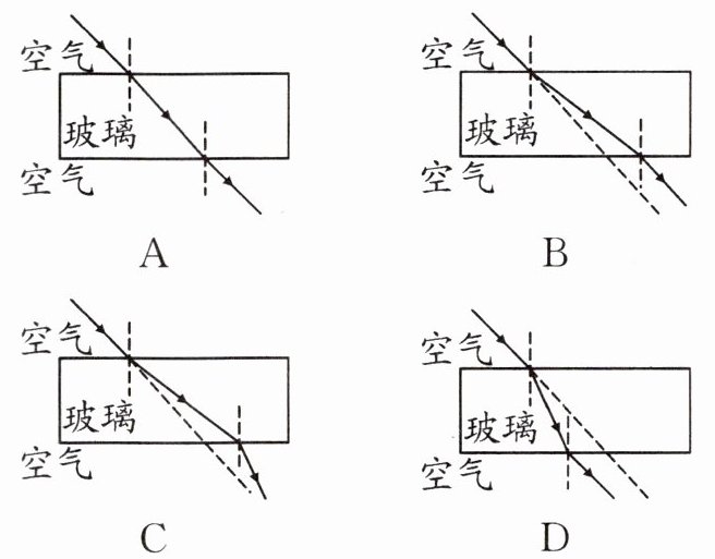 5. 当一束光从空气中斜射向一块上下表面平行的玻璃砖时,下列所示的光路图正确的是( )