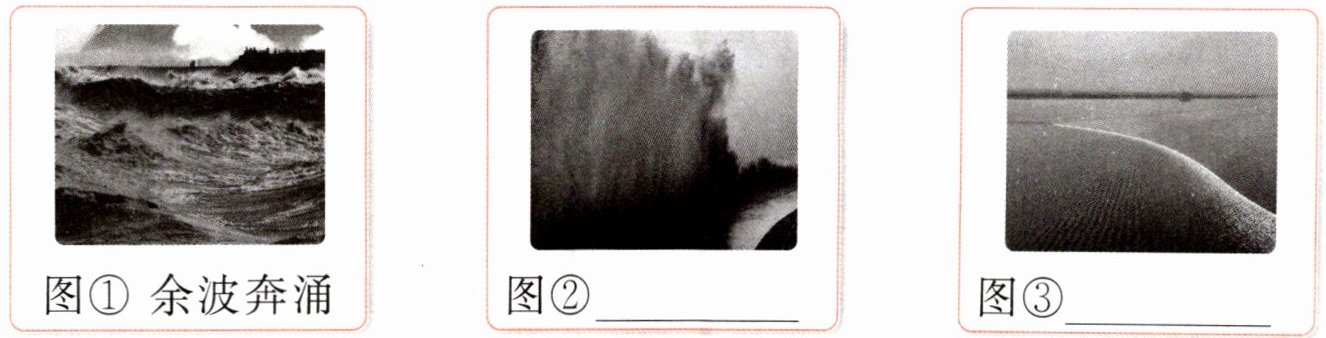 示例:②形成水墙 ③白线移来 潮来时 潮去后 ③②①