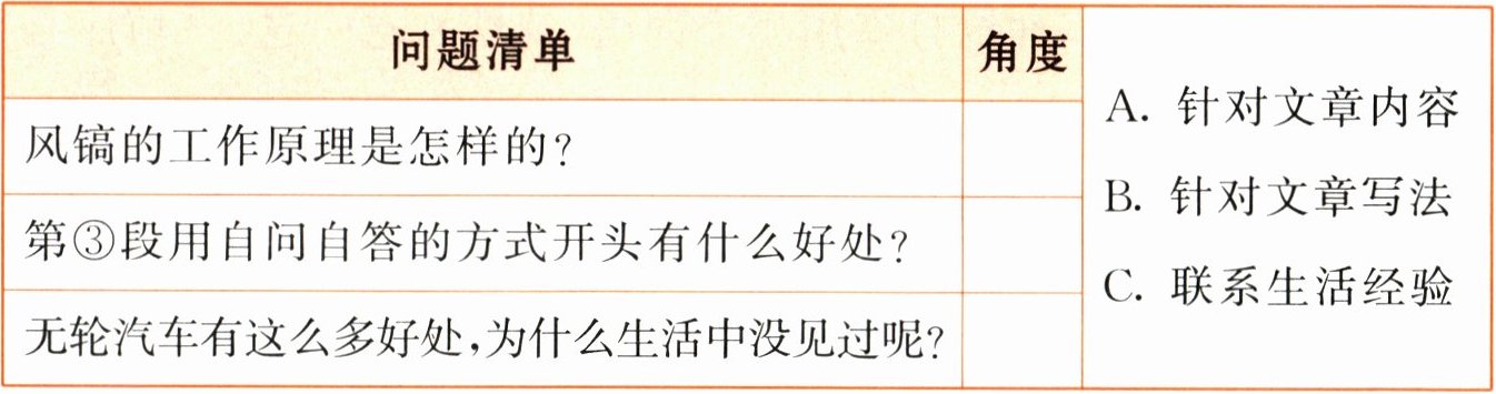 16. 下面是同学们阅读后提出的问题,请根据提问角度整理问题。(3分)