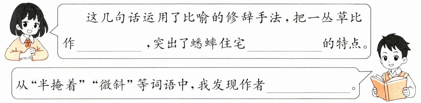 这几句话运用了比喻的修辞手法,把一丛草比作______,突出了蟋蟀住宅______的特点。