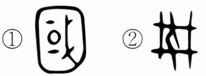 解析 本题考查字形和字义。解答本题时,联系已有的语言文字经验,可以判断①是“国”,②的方框里是“人”。结合“囚”的字形可知甲骨文选②,字义是“拘禁,被拘禁的人”。