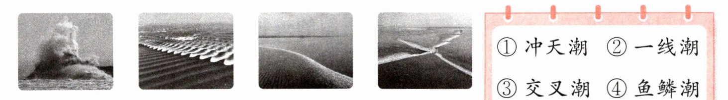 (1)片尾展现了多种钱塘潮的风姿。请结合潮的形状,选出它们的名字。