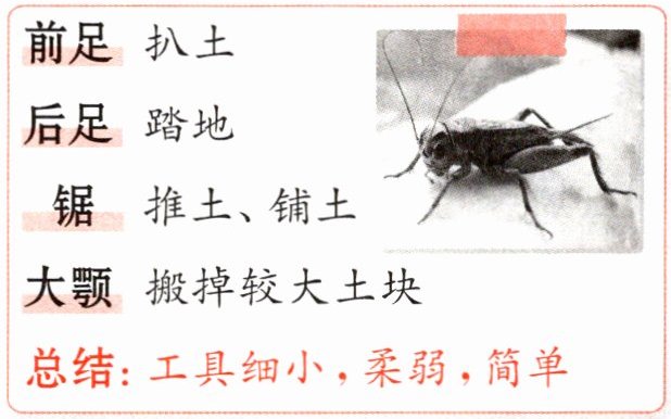 (4)结合蟋蟀的工具,说说为什么说蟋蟀的住宅是“伟大的工程”。