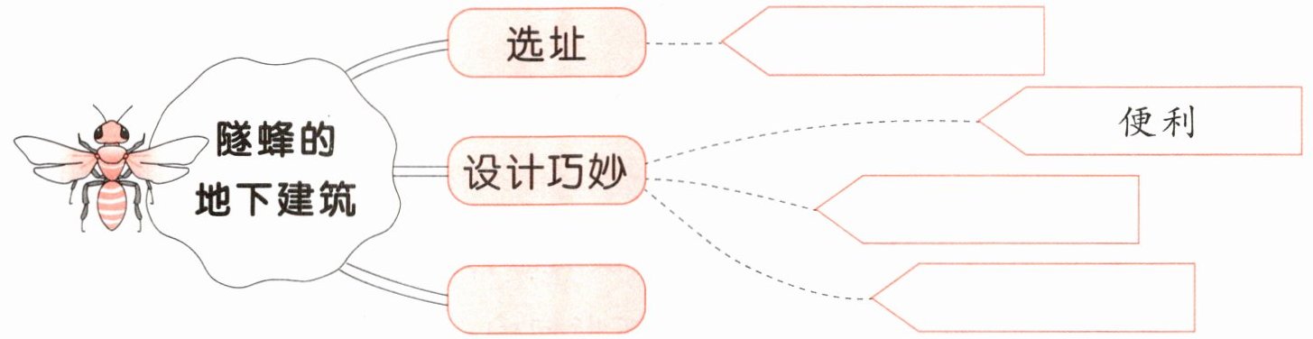 1. 短文围绕隧蜂的地下建筑写了哪几个方面的内容? 请填写思维导图。