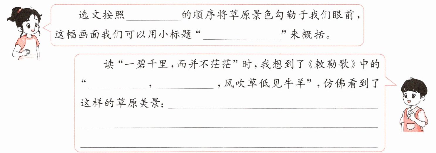 4 同学们对“作者如何把草原景色写得充满诗情画意?”展开了探究,按要求完成练习。