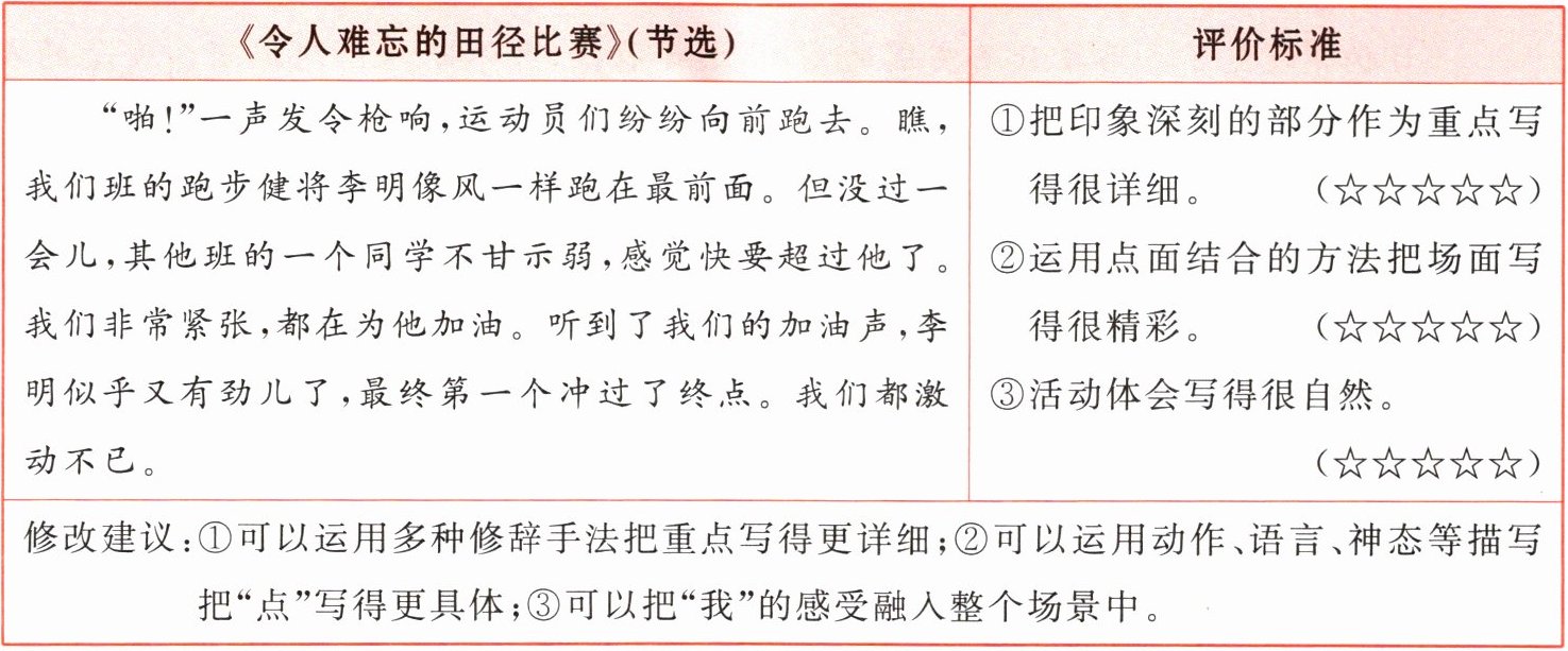 |《令人难忘的田径比赛》(节选)|评价标准|