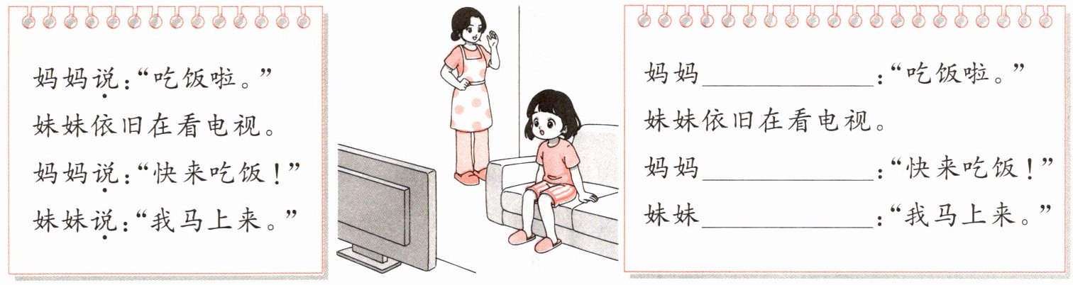 2 写人物说话时,可以不用“说”字,而是根据语境选择合适的词语来表达“说”的意思。请你阅读下面的对话,给“说”换一种表达。