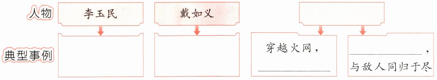 1. 梳理选文英雄们的典型事例,补全思维导图。