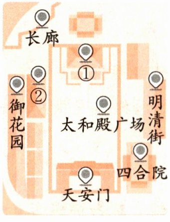 2. 阅读材料二后推测,导览图中的景点①是____,景点②是____。(2分)