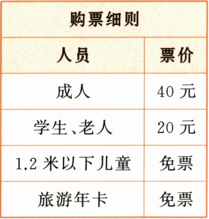 (1)购票:明明一家需要购买____张成人票和____张学生票,还有____人免票,共花费____元。(2分)