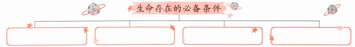 要有足够的光和热,为生命系统提供能源。(1)用提取关键词的方法找到生命存在的条件,补全下图。