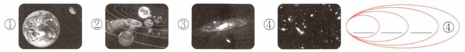 未(réng)(2)请根据上面的内容,用思维导图梳理自然天体系统的关系,将图片序号填入对应的位置。