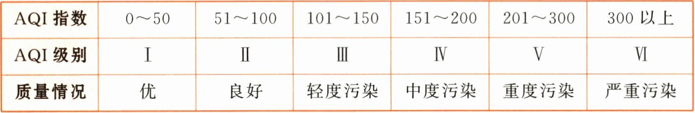 利用空气质量指数(简称AQI)可以直接地评价大气环境的质量状况。
