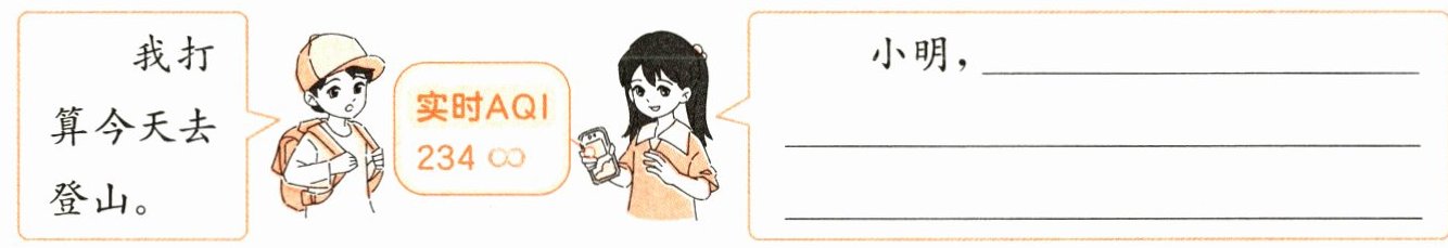 (5)示例:现在的空气质量指数是234,已经达到了重度污染水平。大气污染会危害你的身体健康,还是不要出门登山了。