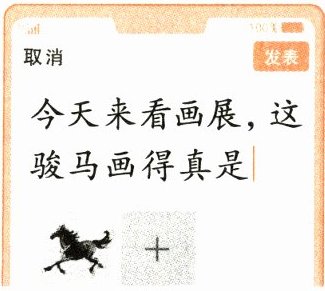 1. [赏画]用《骏马图》配图发朋友圈,下面最适合用于补全文案的词语是哪一项?( )(3分)