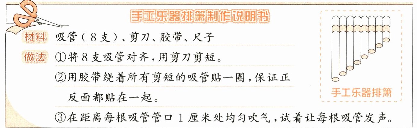5. [手工社]手工社正制作乐器排箫,其原理为空气在不同大小空间中震动,发出不同音调。珊珊做的排箫吹出的音调没有明显差别,请你帮她找出原因。(5分)