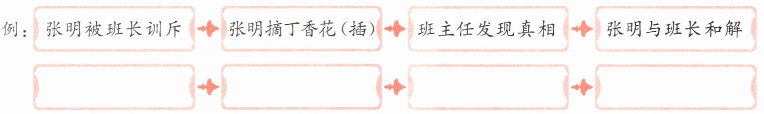 例:张明被班长训斥→张明摘丁香花(插)→班主任发现真相→张明与班长和解