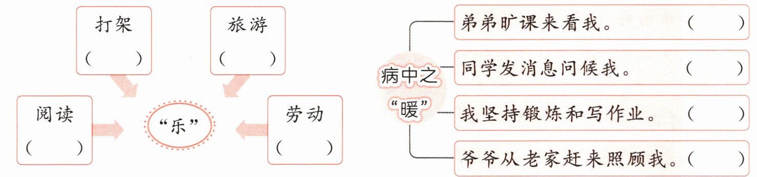 (2)同学发消息问候我。√ 爷爷从老家赶来照顾我。√